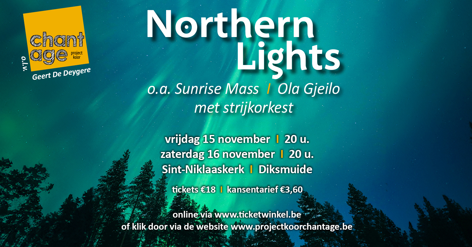 Projectkoor CHANTage werd voor dit project begeleid door een 14-koppig professioneel strijkorkest. Het geheel stond, net zoals de voorbije jaren, onder de deskundige leiding van Geert De Deygere.